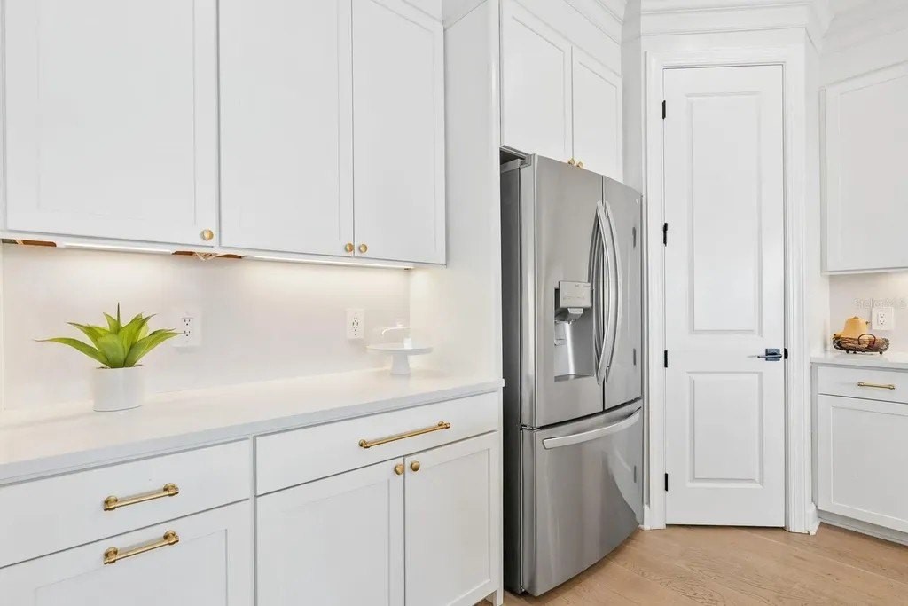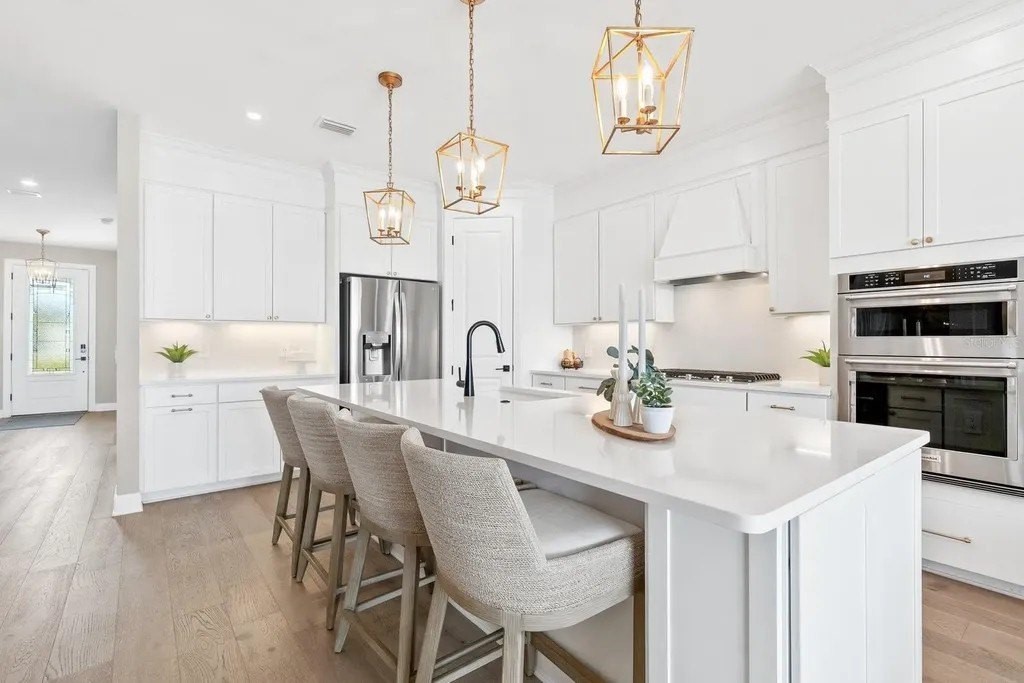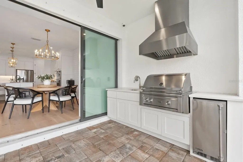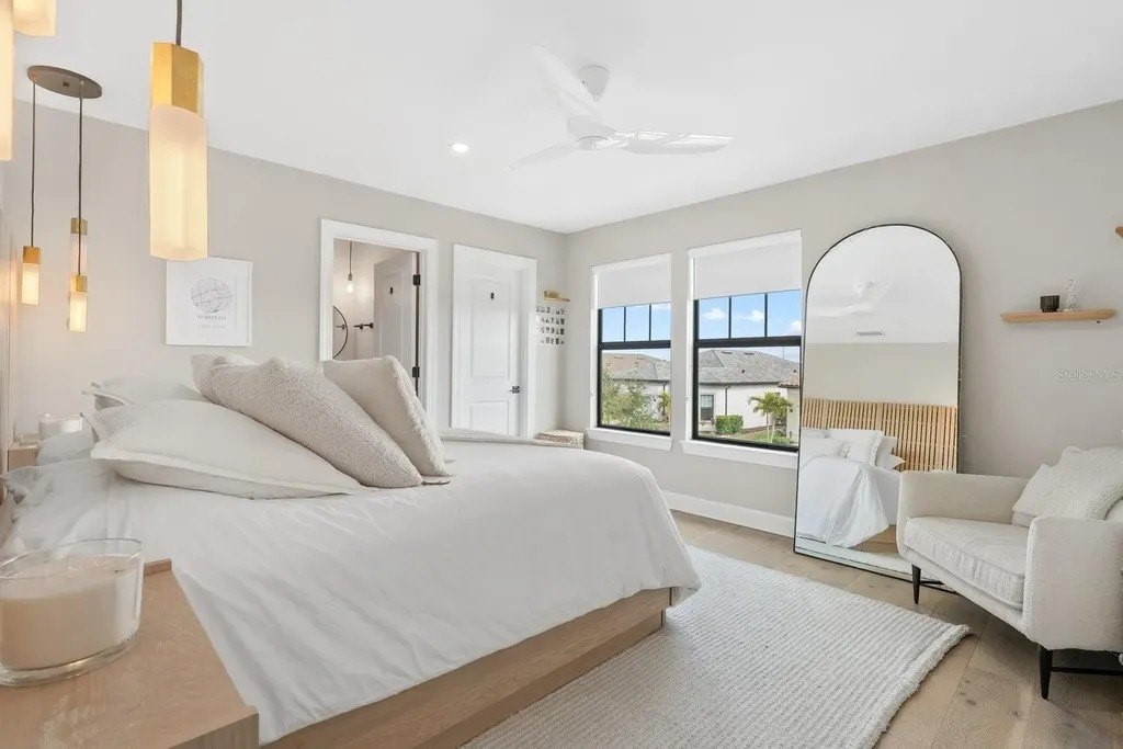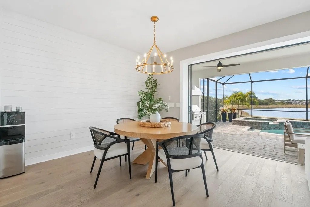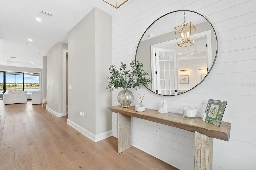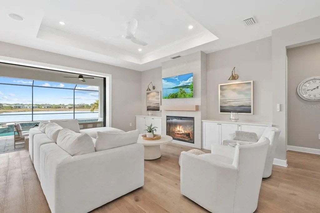 Perfectly positioned on one of the most coveted premium waterfront lots within the resort-style gated community of Talon Preserve, this exceptional 4-bedroom, 3.5 bath residence features an office/den and a bonus room, offering 2,894 square feet and built in 2023 by the highly sought after builder Divosta. With NO CDD FEES and NOT located in a FLOOD ZONE, this home provides piece of mind for the discerning buyer. The sellers spared no expense upgrading this masterpiece with a $135,000 lot premium, 8-foot interior doors, energy efficient tankless water heater, designer lighting fixtures throughout, luxurious engineered hardwood floors with a sound barrier insulation beneath the upstairs flooring, tray ceilings with recessed lighting, designer ceiling fans, custom artisan woodwork, refined shiplap, two electric fireplaces, and all closets have custom built-in shelving. The chef's kitchen is beautifully appointed with stunning quartz countertops and backsplash, 42-inch soft-close cabinetry, designer restoration hardware, double roll-out trays, under-cabinet lighting, a gas cooktop, built-in oven, and microwave/convection oven, and an oversized pantry with custom built shelving. Impress your guests with seamless indoor-outdoor living through pocket sliding glass doors that open to your private backyard oasis, featuring a custom-built heated saltwater pool and spa, along with a fully equipped outdoor kitchen- all set against a long, unobstructed water and preserve view, creating the perfect backdrop for breathtaking sunsets. The custom-built outdoor kitchen includes a sink, refrigerator, built-in gas grill, and a custom Tradewind hood properly vented through the roof for optimal ventilation. The primary suite is located on the first floor and features an oversized walk-in closet and en-suite bathroom with dual sinks, walk-in shower, and sunken tub. Upstairs you will find 3 additional bedrooms along with an oversized bonus room that features a custom built-in desk, fridge, and electric fireplace. Two of the bedrooms share one full size bathroom, while the fourth bedroom serves as a second primary suite, complete with its own en-suite bathroom. The oversized garage features an epoxy floor finish, a 4-foot extension, and an EV charger that conveys only upon request. A holiday package that has additional elevated exterior outlets for adding lights around the home. Technology and security are thoughtfully integrated with a Sonos sound system featuring six hardwired in-ceiling speakers powered by three amplifiers, and a hardwired smart security system with multiple cameras and high-tech features. A complete list of upgrades is available upon request. Residents of Talon Preserve enjoy resort-style amenities including an 18,000 sq. ft. grand clubhouse, an active social calendar with events, resort-style pool, hot tub, fire pit, state of the art fitness center, arcade, poolside bar & grill, pickleball, tennis, dog park, bocce courts, playground, landscaping and irrigation are included in the quarterly HOA fee. Located in an A-rated school district and just minutes to Nokomis beach, premium restaurants, and Sarasota Memorial Hospital-Venice. This is a rare opportunity to own a premium waterfront lot so act quickly and call for your private showing today. Search the address on YouTube for a full video tour.